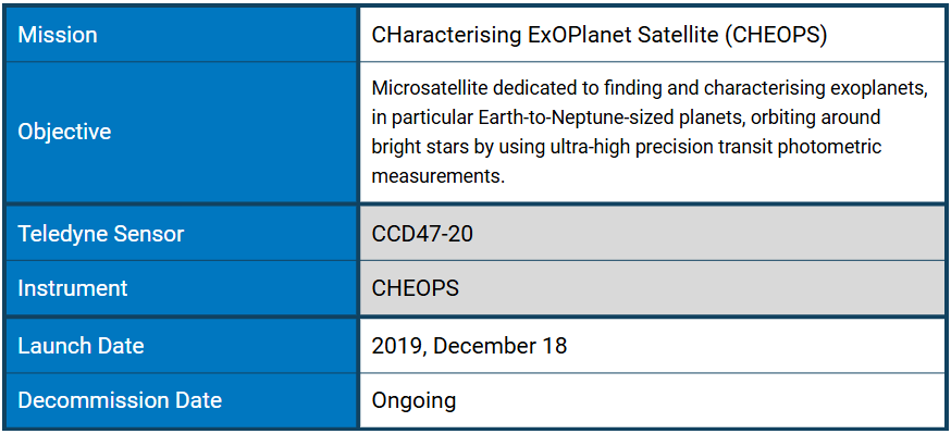eoPortal. (2015, July 28). CHEOPS (CHaracterizing ExOPlanets Satellite). https://www.eoportal.org/satellite-missions/cheops