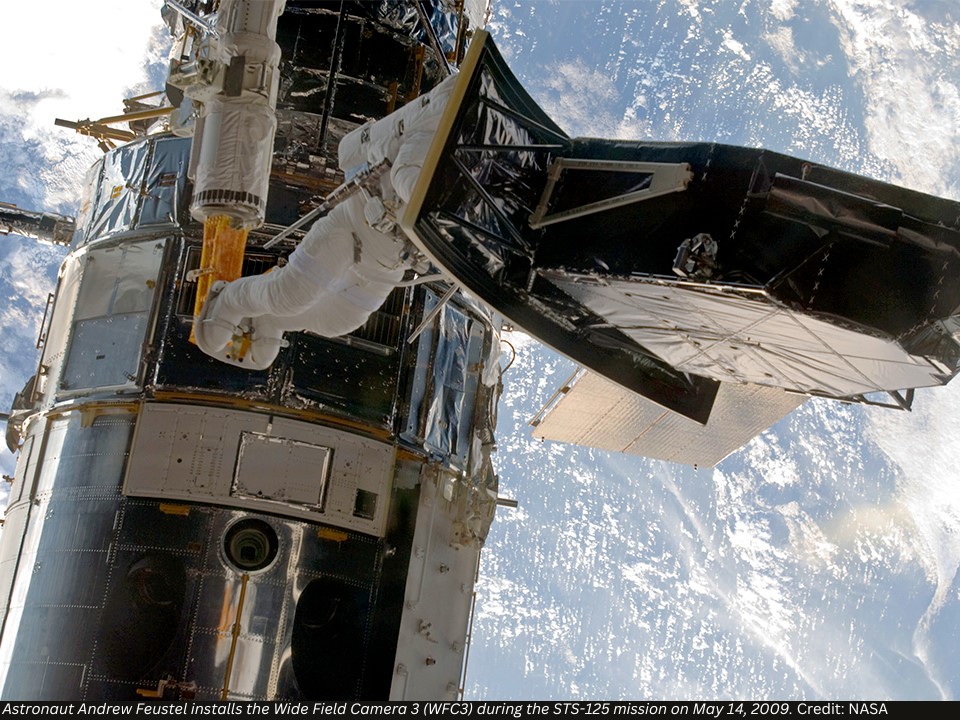 Launched in 1990, Hubble was one of the first space telescopes designed to be repaired and upgraded to extend its life as a premier and highly productive observatory.  During the 2009 STS-125 Servicing Mission, astronauts replaced the Wide Field Camera 2 (WFC2) with the Wide Field Camera 3 (WFC3), increasing resolution by six times and expanding the field of view. These improvements alleviated some of the challenges for scientists having to compromise between taking a detailed image of a specific target or trying to capture a wider perspective at a lower resolution.