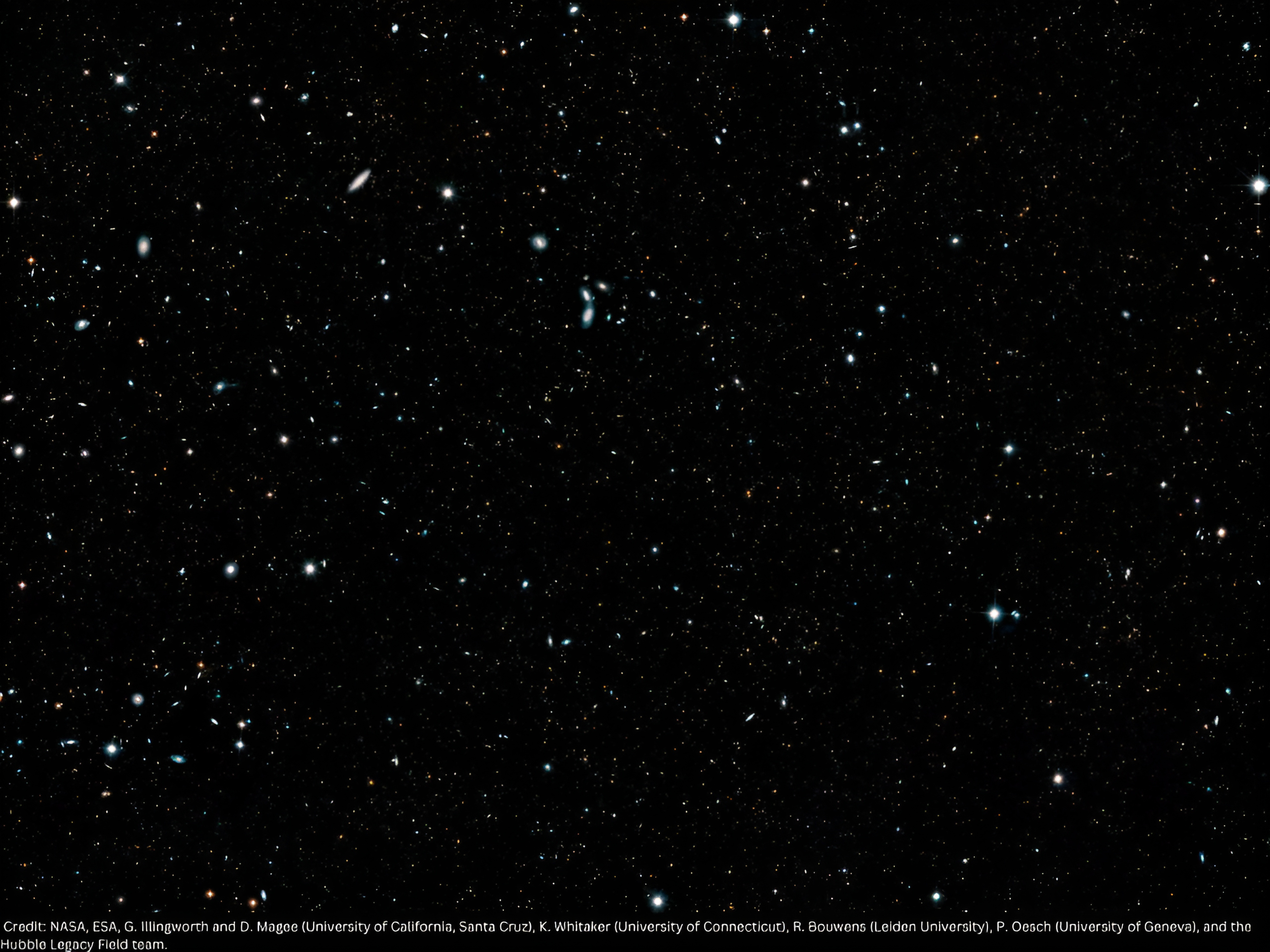 With each successive generation of improved scientific instruments – such as adding ultraviolet detection – Hubble reimaged areas of the sky creating gigantic mosaics of deep field images. The latest iteration, Hubble Legacy Field, combines 7,500 separate HST exposures representing 16 years of observations. It contains roughly 265,000 galaxies stretching back 13.3 billion years to just 435 million years after the Big Bang. In other words, it's the closest equivalent we have to a snapshot of the universe.